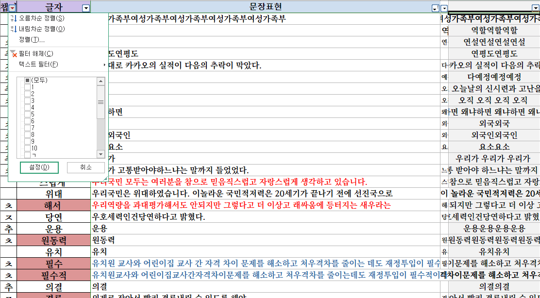 엑셀에 2000개 정도의 약어가 있는데 하루에 순번을 정해서 천개씩 돌아가며 테스트를 해 주고 있어요