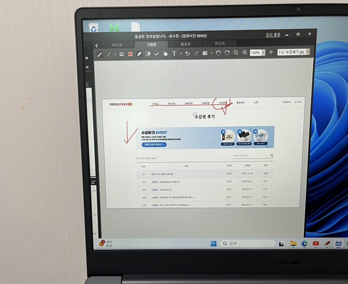 소리자바아카데미 홈페이지 > 강의실 : 화상강의 를 통해 입장하게 되면