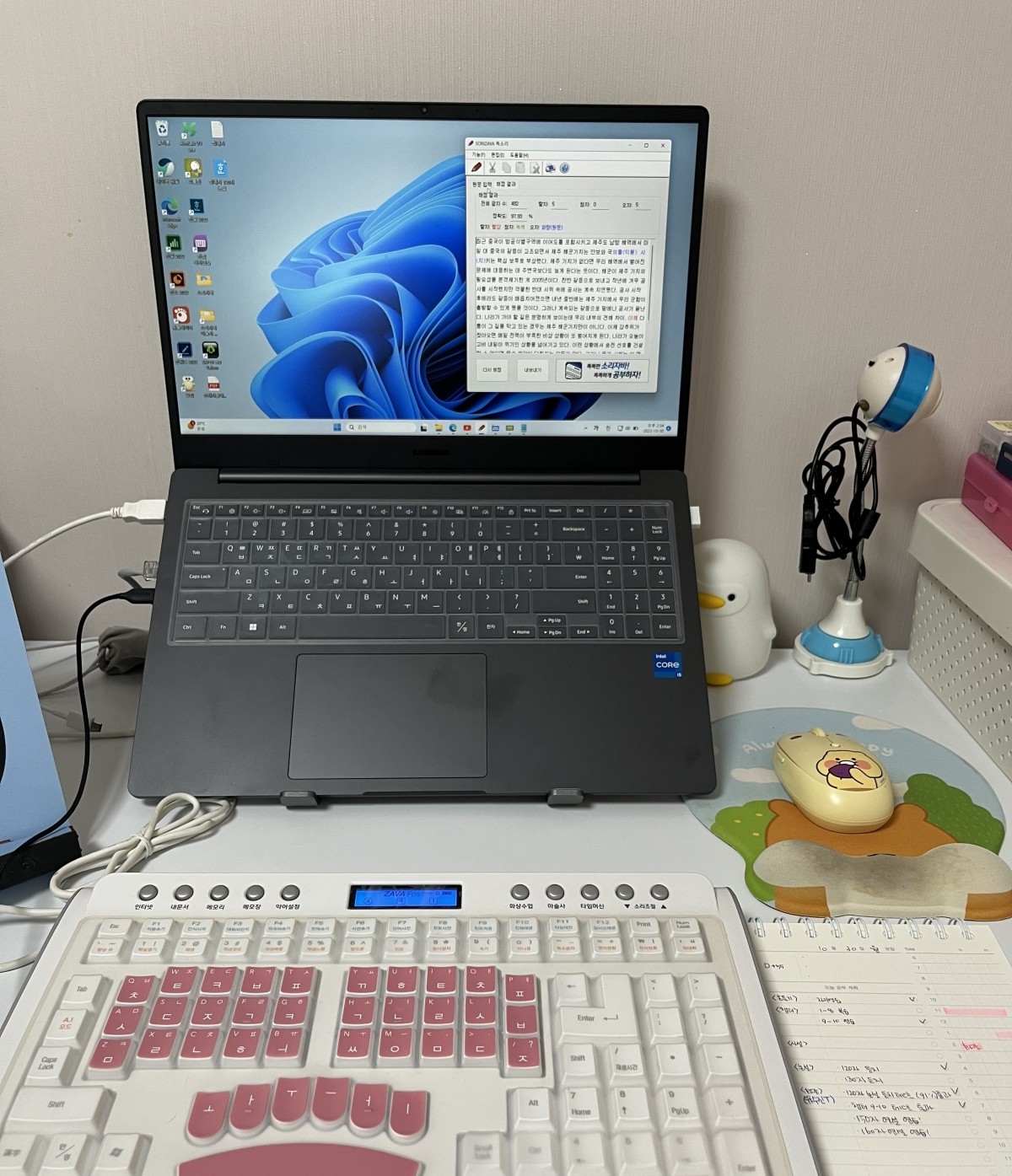 아무리 듣고 치는 연습이라 해도 나도 모르게 내용을 점점 외우게 되고 손도 익숙해져서 정확도가 점점 높게 나오게 됩니다. 하지만 외워서 치는건 온전히 내 실력이 아니기에.. 꼭 선생님께서 보내주시는 추가파일과 공부방법의 꿀팁을 얻으며 공부하시는게 중요하다고 생각합니다.