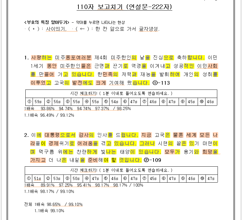 듣치 보치는 처음에 반이동을 하게 되면 이제 20자씩 오르기 때문에 속도 적응단계가 반드시 필요할 수 밖에 없습니다. 그래서 연습파일 중 2-3개 정도는 속도 적응용으로 단락치기 후 나머지 듣고 치기용으로 공부하고 있습니다. 단락치기할 때도 시간에만 쫓겨서 오타내며 치지마시고 정화하게 치게연습해주세요. 저는 아직도 오타가 많아서 고치기 넘힘들더라고요.