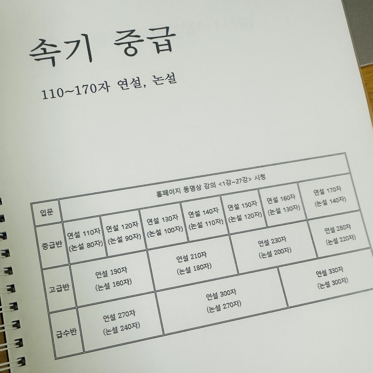 중급 170자부터 고급반은 다수로 수업을 듣게 됩니다.