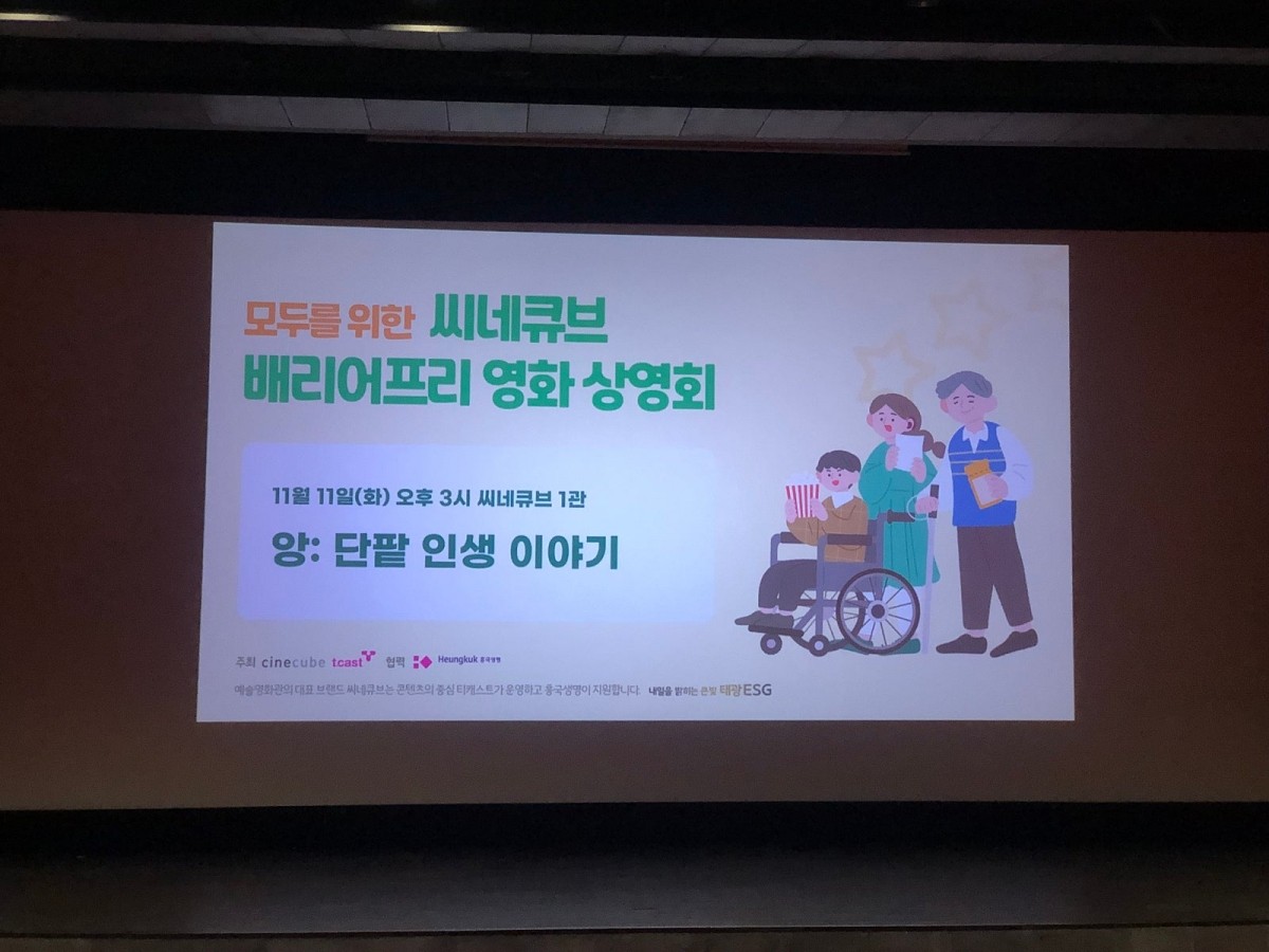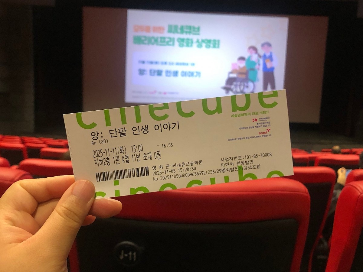 토크가 끝나고 영화 보러 씨네 큐브로 이동했고 배리어 프리 버전 영화 첫 관람을 했습니다.