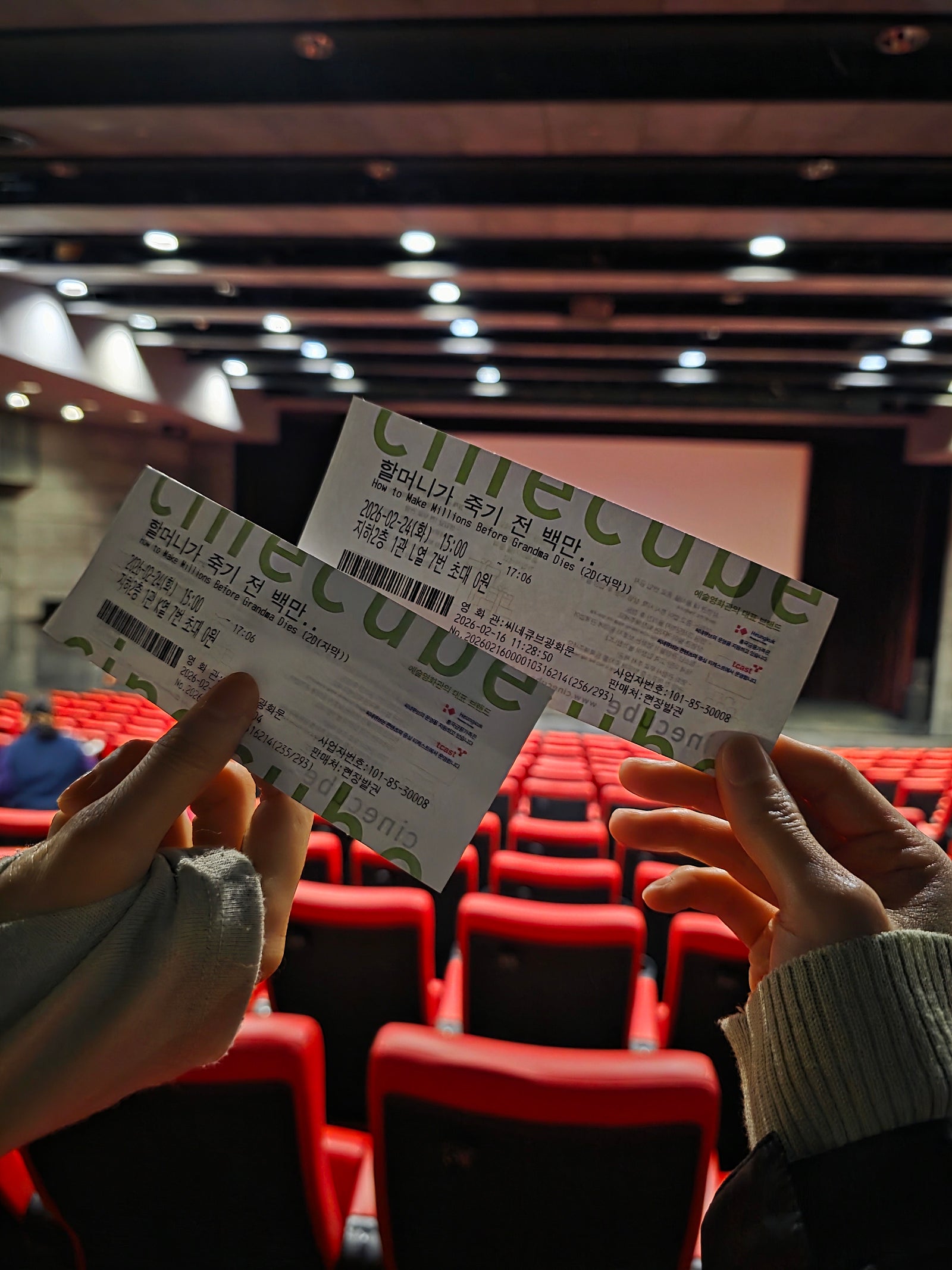 오늘은 제가 이벤트에 당첨되어 아~~~~~주아주 유익한 시간을 보내고 왔던 배리어프리 영화 <할머니가 죽기전 백만장자가 되는 법> 관람 후기를 작성해보려고 해요. 여러분도 저의 경험을 두 눈 크게 뜨고 예쁘게 봐주시면 감사합니당ㅎㅎ