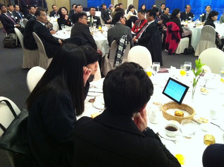 테이블위에 설치된 작은 모니터에 강연내용이 빠르고 기록되고 있었고