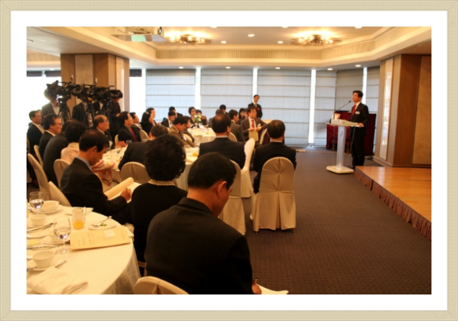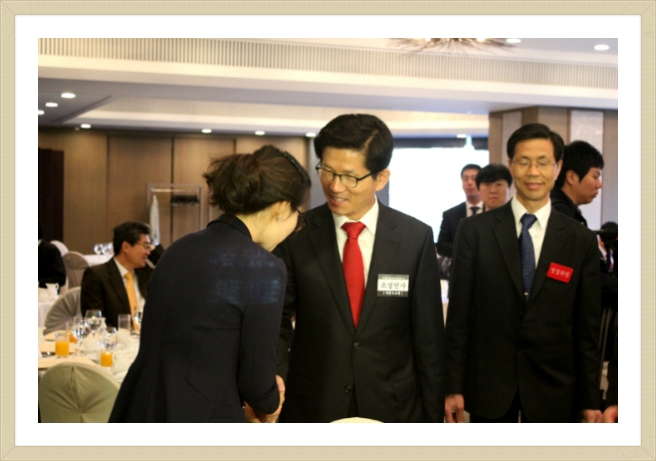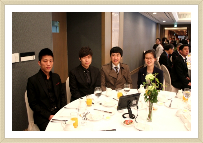 같이 당첨된 이종환학우와 8개월만에 한글속기를 취득하신 협회분과 함께 프라자 호텔로 들어섰습니다. 앞쪽에는 책상이 하나 놓여져 있었는데, 바로 우리속기사 분들이 정치, 사회적으로 영향을 미치는 분들의 연설을 담아내시는 곳이였습니다. 6시 20분도 이른 시간이라고 생각했는 데 그보다훨씬 더 빨리 오셔서 속기장비를 준비 하시는 모습을 보니 책임감과 부지런함은 속기사가 가져야할 필수 덕목이구나 라는 생각이 들었습니다. 간단하게 조찬을 하며 협회분들과 여러 이야기를 나눌 수 있었습니다. 같은 꿈을 갖고 있는 분, 이미 내가 이루고자 하는 꿈에서 일하시는 분들을 뵈니 더 열심히 노력해야겠다는맘이 막 생기더군요.