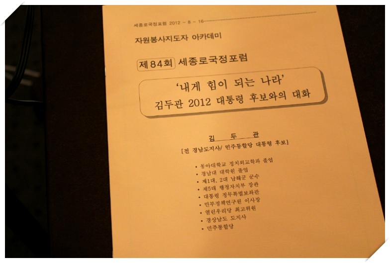 이윽고 김두관 후보님이 들어오셨고 저희는 악수를 나누고 착석을 했습니다. 우리 앞에는 조그마한 모니터가 있었고 그 모니터는 속기사님의 컴퓨터 화면을 보여주고 있었습니다. 속기사님께서 손을 푸시는 모습이 그대로 보였는데 정말 이건 제 수준과는 천지차이였습니다. 이렇게 빠르게 칠 수 있나 할 정도였습니다. 박정웅 선생님께서 화면에 보이는 것들을 친절히 설명해 주시며 하나하나 설명해 주셨습니다. 그리고 포럼이 시작 되었습니다. 오늘 포럼은 다른 날과 다르게 연설식이 아니라 김두관 후보님과 다른 분들과의 대화 형식으로 이루어졌습니다. 그리고 속기사분들의 속기가 본격적으로 시작되었습니다. 저는 놀라고 말았습니다. 이게 실력이구나. 그리고 제가 집에서 들으면서 치는 낭독파일과는 전혀 달랐습니다. 말의 속도, 발음, 가끔씩 얼버무리시는 말들, 대화 주고받기 등 제가 치는 파일은 진짜 그냥 연습파일이를 뿐 실무와는 전혀 다르다는 것을 알았습니다.