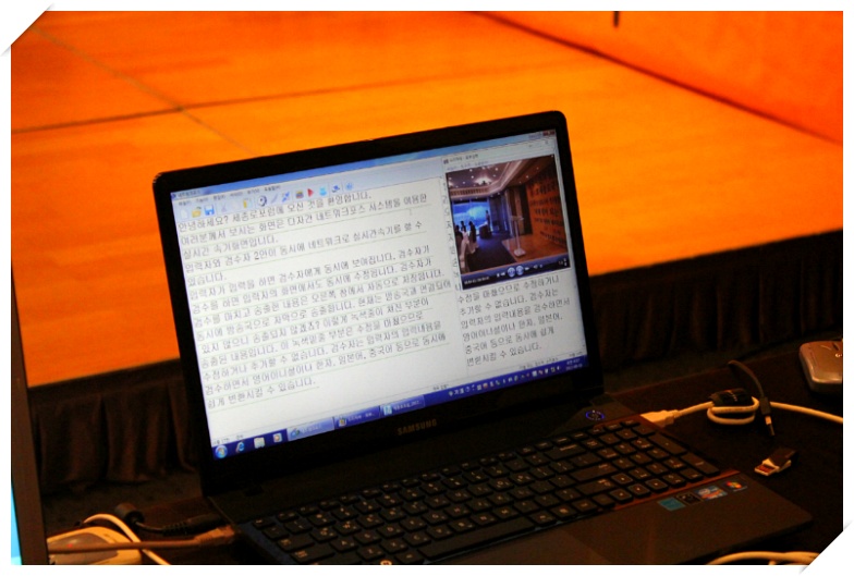 모니터 뚫어져라 보다가 언뜻 속기사님의 손이 눈에 들어왔습니다. 그리고 몇 초간 멍하니 바라 보았습니다. 무릎위에 놓고 치고 계셨습니다. 손끝은 꼿꼿하게 펴져있었습니다. ‘저래서 오타가 적게 나는 거구나’, 그리고 손동작은 제 것과 다르게 버벅임 없이 간결하셨습니다. ‘연습 얼마나 하셨을까’, 나는 얼마나 더 연습하면 저렇게 될까? 막막할만도 한데 이상하게 흥분되고 기분이 좋았습니다. 한 속기사분께서 치시면 그옆에 분께서 하나하나 검수를 하셨습니다. 틀린 부분과 빠진 부분, 따옴, 쉼표 등과 오타부분 고치시면서 쭉쭉 내려 가는 게 보였습니다. 속기란 이런 것이구나! 포럼이 끝났습니다.