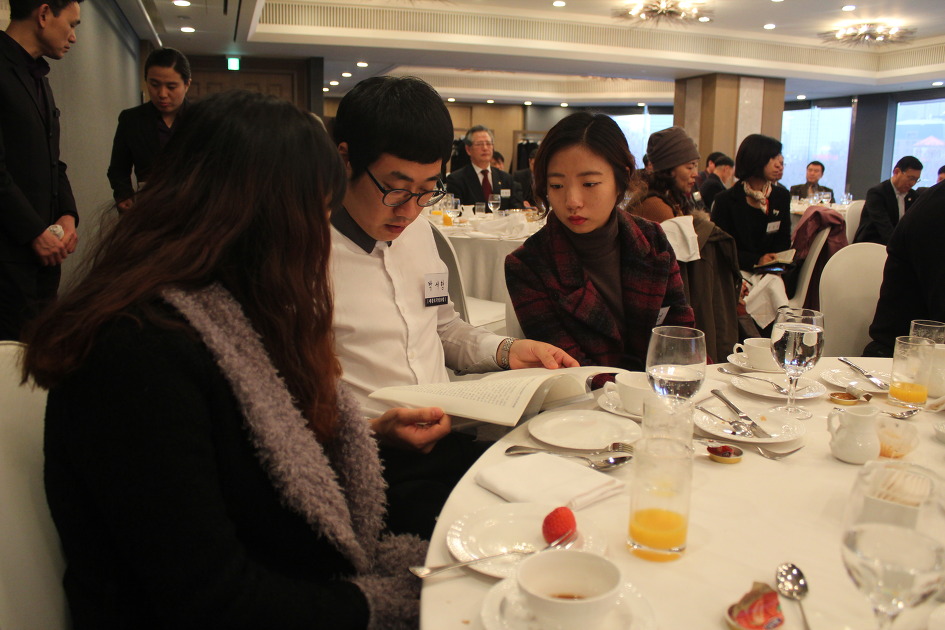 안녕하세요? 저는 1월16일 세종로포럼 당첨자 김아람입니다. 3~4번의 참가신청끝에 당첨되어서 드디어 다녀오게 되었습니다. 속기를 1년조금 넘게 치고 있는데, 실제로 속기사께서 치는 모습은 처음 보기에 기대반 설렘반으로 일찍 새벽부터 일어나서 준비하고 호텔에 도착하였습니다. 가자마자 얼마 있지 않아 박세형 선생님께서 맞이하러 나오셔서 만나게 되었고, 같이 당첨된 분과도 만나 올라갔습니다. 박세형 선생님도 처음 뵙고, 저와 함께 오신 분도 처음이어서 무척 어색했지만 올라가서 포럼에 대한 간단한 설명과 이런 저런 이야기를 해주셔서 긴장이 점점 풀렸습니다. 또한 기록을 하실 속기사분도 소개해 주셔서 들뜬 마음으로 인사를 나눈뒤 조찬이 시작되었습니다. 포럼에 참여하신 분들과 함께 각각 테이블에서 먹었는데 TV에서 나올 법한 분들의 모습을 앞에서 지켜보면서 먹으니 마치 TV를 보는 것 같았습니다. ^^ 식사 중에도 여러 가지 속기에 대한 질문이나 궁금점들에 대해서 친절하게 대답해 주셔서 이야기를 나눌 수 있었습니다. 간단하게 식사가 끝난뒤 드디어 포럼이 진행되었습니다. 속기사님과 그 바로 옆에는 수정을 해주시는 분께서 나란히 앉으셔서 간단히 손을 푸시고 본격적으로 기록이 시작되었습니다. 저희 테이블 바로 위에는 내용을 볼 수 있도록 작은 모니터가 마련이 되었기 때문에 중소기업청장님께서 하시는 말씀과 함께 기록을 동시에 볼 수 있었습니다. 말씀이 진행되기 직전 속기사님의 표정을 보았는데 긴장한 역력도 없이 아주 편안해 보였습니다. 평소 잘 떨고 긴장도 엄청나게 많이 하는 저에게는 그 모습이 정말 프로같았습니다. 혼자 집에서 연습할 때는 거의 기계음성을 듣고 저도 단순히 기계처럼 타이핑을 하는 것에 그쳤는데, 긴 시간 동안 사람의 음성을 융통성 있게 써 내려 가시는 걸 보면서 부럽기고 하고, 집중력도 정말대단하구나. 하는 점을 느꼈습니다. 1급과정에 있는 저도 청장님께서 하시는 말씀이 매우 불규칙한 속도로 빨랐다 느렸다 했기 때문에 들리는 음성 자체가 참 낯설었습니다. 그리고 또 하나 느낀 점은 속기사는 정확하고 신속하게 기록하는 것은 기본이며 자기가 나중에 해야 될 속기분야에 대한 지식도 풍부해야 된다는 점입니다. 오늘의 내용에서는 창조경제와 국민행복을 중심으로 하여 말씀이 진행됐는데 세부적인 내용에서 잘 못알아 듣겠는 생소한 정치적인 단어, 영어를 들으면서도 끊임없이 쳐야되기 때문에 지식을 겸비한 속기사의 자질이 한층 더 메리트가 있어보였습니다. 중간중간 '아 너무 빨라서 못치시고 넘어가는 부분이 있으면 어떻게 하지'라고 노심초사 할 때도 있었는데 수정과 더불어 완벽하게 나오는 것을 보고 쓸데없는 걱정을 하고 있구나. 하는 생각도 하였습니다. ^^ 옆에서 박세형 선생님께서도 가끔 손가락을 움직이시면서 무릎에 대고 치셨는데, 그 모습을 보고 저도 중간중간 손가락을 움직여 가며 따라 해보려고도 노력했지만 버벅대는 제 움직임은 아직도 갈 길이 멀게 느껴졌고, 직접 같이 실전에서 친다고 생각하면서 치니까 빨리 현장에서 인정받는 속기사가 되고 싶은 마음이 커졌습니다. 그렇게 1시간 정도 지나고 나서 기록이 끝났고 잠깐의 최종 수정시간이 지나고 완성본이 바로 나왔습니다. 10장은 거뜬히 넘는 분량이 순식간에 프린트가 된 것이 너무 신기했습니다. 그리고 마지막에는 사진촬영과 함께 개인적으로 인터뷰를 하는 시간도 가졌습니다. 짧게 준비는 해갔는데 모든 사람들이 인사하는 분위기 속에서 하려니 버벅거려서 어떻게 말했는지 기억도 나지 않네요.ㅎㅎ 어쨌든 이번 포럼을 통해 전달하고 싶은 메시지는 속기 공부를 하시다가 슬럼프에 빠지시거나 나태해 지셔서 공부속도가 쳐지는 분들이 계시다면 꼭 이런 현장속기 체험을 직접 경험해 보시는 것을 추천드립니다. 자신에게 굉장한 자극이 될 뿐더러 나도 할 수 있다라는 자신감도 상승됩니다. 시험이 얼마남지 않은 상태인데 자격증취득을 향해 열심히 전진해 나갈 수 있을 것 같습니다. ^^ 오늘 포럼동안 같이 한 보영씨도 꼭 자격증 취득하시길 바라겠고, 수업때 보지 않았었지만 실제로 처음 본 박세형선생님께도 감사드립니다. ^^*