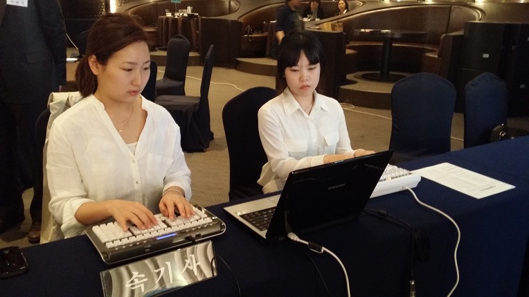 넷스쿨 학생이었던 저는 얼마전 속기 봉사단에 선정이 되어서 포럼에 참여할 수 있는 기회를 가지게 되었습니다. 예전에 현장속기 이벤트 포럼때는 현장 속기사를 직접 눈으로 보고 어떻게 하는지 체험할 수 있었던 반면, 이번 속기봉사단은 포럼진행시 제가 스스로 칠 수 있었기 때문에 더욱더 긴장이 되고 기뻤습니다. 체험 당일 4월24일 아침 6시50분까지 신사역 리버사이드 호텔에 도착하여 앞에 속기를 할 수 있도록 마련된 곳으로 갔습니다. 포럼에 참여하는 많은 사람들이 눈 앞에 있었고, 저와 같이 속기봉사단에 참여하시는 다른 한 분도 도착하셔서 자리에 앉아 준비를 하였습니다.