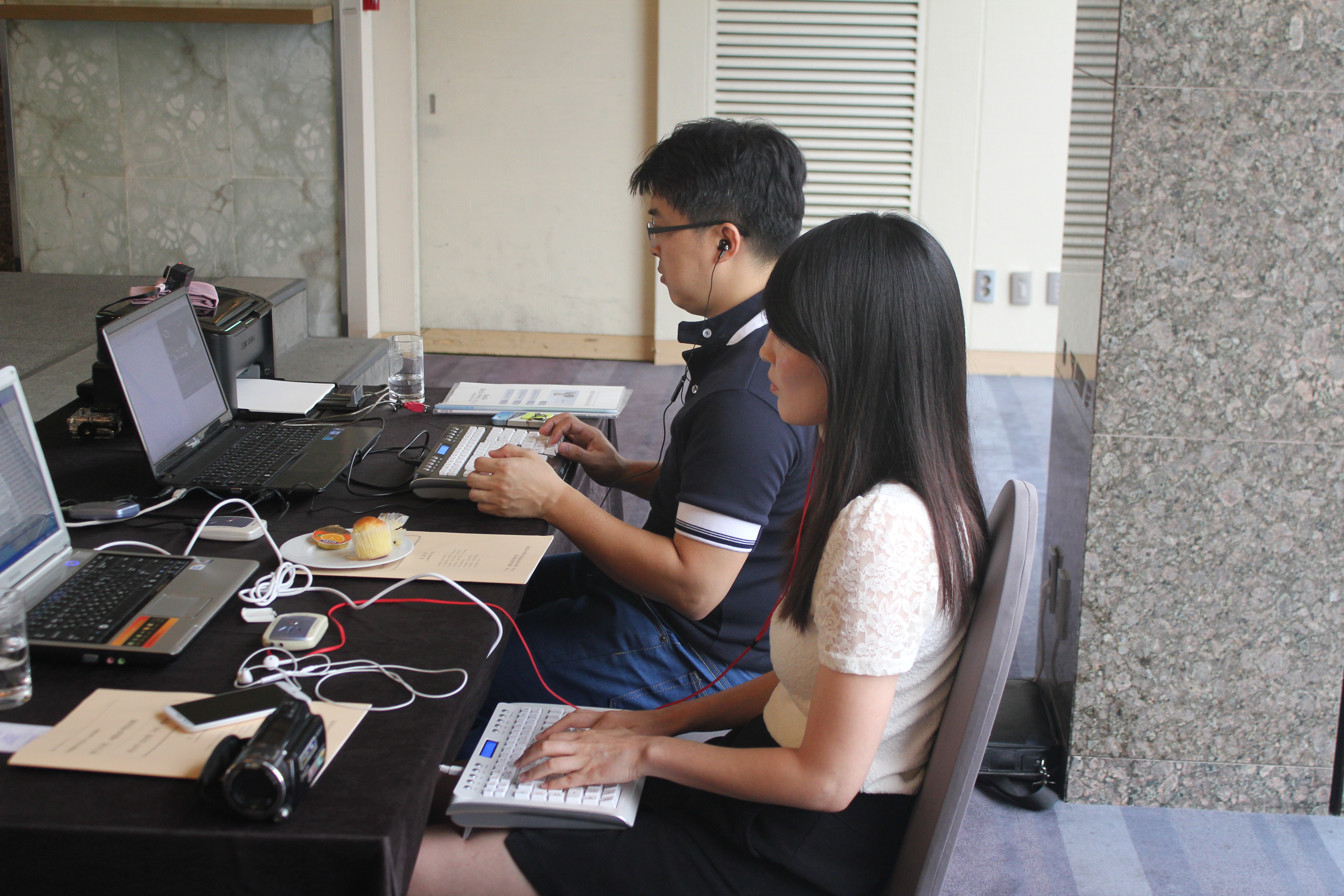 곧이어 오늘의 포럼 발표자이신 조성완 소방방재청 차장님의 말씀이 시작되고 저희는 저희 테이블에만 있는 앞에 있는 작은 모니터를 통하여 속기사님들이 받아치시는 글들을 바로 볼 수 있었습니다. 영상으로는 많이 보았지만 실제로 치는 것을 보는 것은 처음이어서 무척 신기하였습니다. 바로바로 받아치시고 틀린 것도 수정하시면서 모든 언어들을 손으로 치고 계셨습니다. 속기석에는 두 분이 앉아계셨는데 한 분이 치시면 옆에 계신 분이 조금 놓치거나한 부분들을 수정하셨습니다.