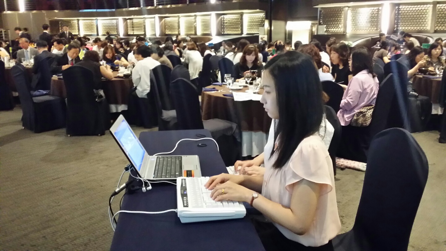 안녕하세요? 저는 7월 서울 포럼 속기 봉사에 참가한 박수진이라고 합니다. 한글속기 3급 자격증을 취득하고 더 높은 급수의 자격증을 위해 공부하면서, 실무에 대한 간절함이 있었습니다. 그러던 중 좋은 기회를 통해서 서울포럼에 참가하게 되었습니다. 이른 아침에 시작하여 첫 지하철을 타고 출발하는 길은 설렘과 긴장감으로 가득했습니다. 더 리버사이드 호텔에 도착하여 담당자 선생님께 진행방법을 듣고 강연이 시작되기 전 연습을 하며 손을 풀기도 했습니다. 강연 시작 전후에 선생님께서 해주신 많은 경험담과 이야기들이 실무속기에 대해 더 많은 존경심을 갖게 해주었습니다. 또 진짜 속기사 선생님과 직접 대화를 할 수 있다는 것도 신기했고, 제가 완벽하게 속기록을 작성할 수는 없지만 속기사 자리에 앉아있다는 자체로도 뿌듯하였습니다.