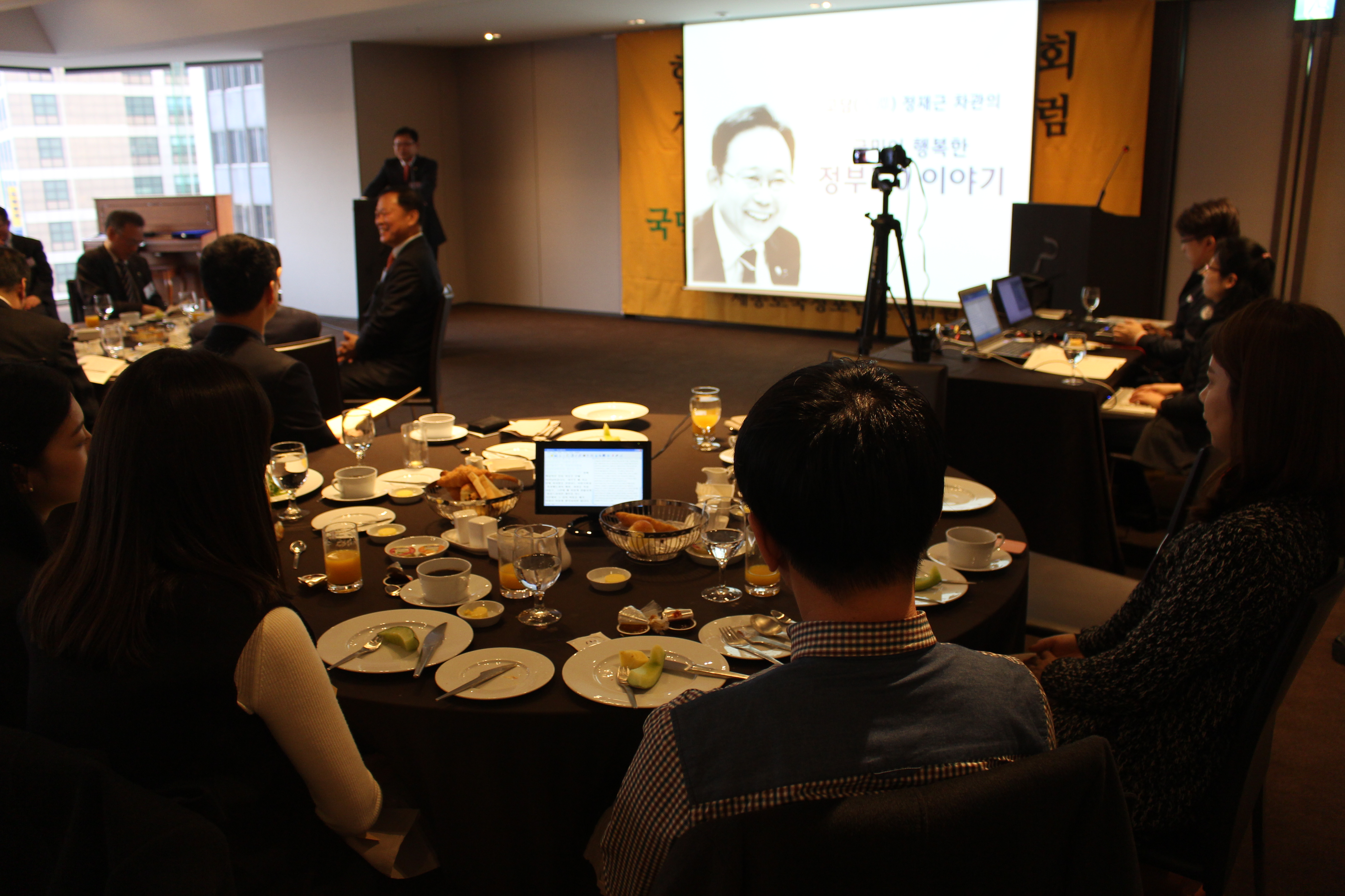 안녕하세요? 금번 세종로 포럼에 참석하게 된 윤준호 라고 합니다. 세종로 포럼 현장체험이벤트에 당첨되어 6시 40분까지 와야 된다는 연락을 받고 기대 반 걱정 반으로 목요일을 기다렸습니다. 일찍 일어나야 한다는 압박감과 하필 감기가 걸려 그야말로 뜬눈으로 밤을 지세우고 새벽 5시에 출발을 했습니다. 한적 할 것이란 저의 예상을 깨고 버스든 지하철이든 사람이 많은 것을 보고 이 시간에도 이렇게 바삐 움직이는 분들이 많구나 하는 자기반성의 시간을 가지며 포럼이 진행되는 호텔로 발걸음을 재촉 했습니다.