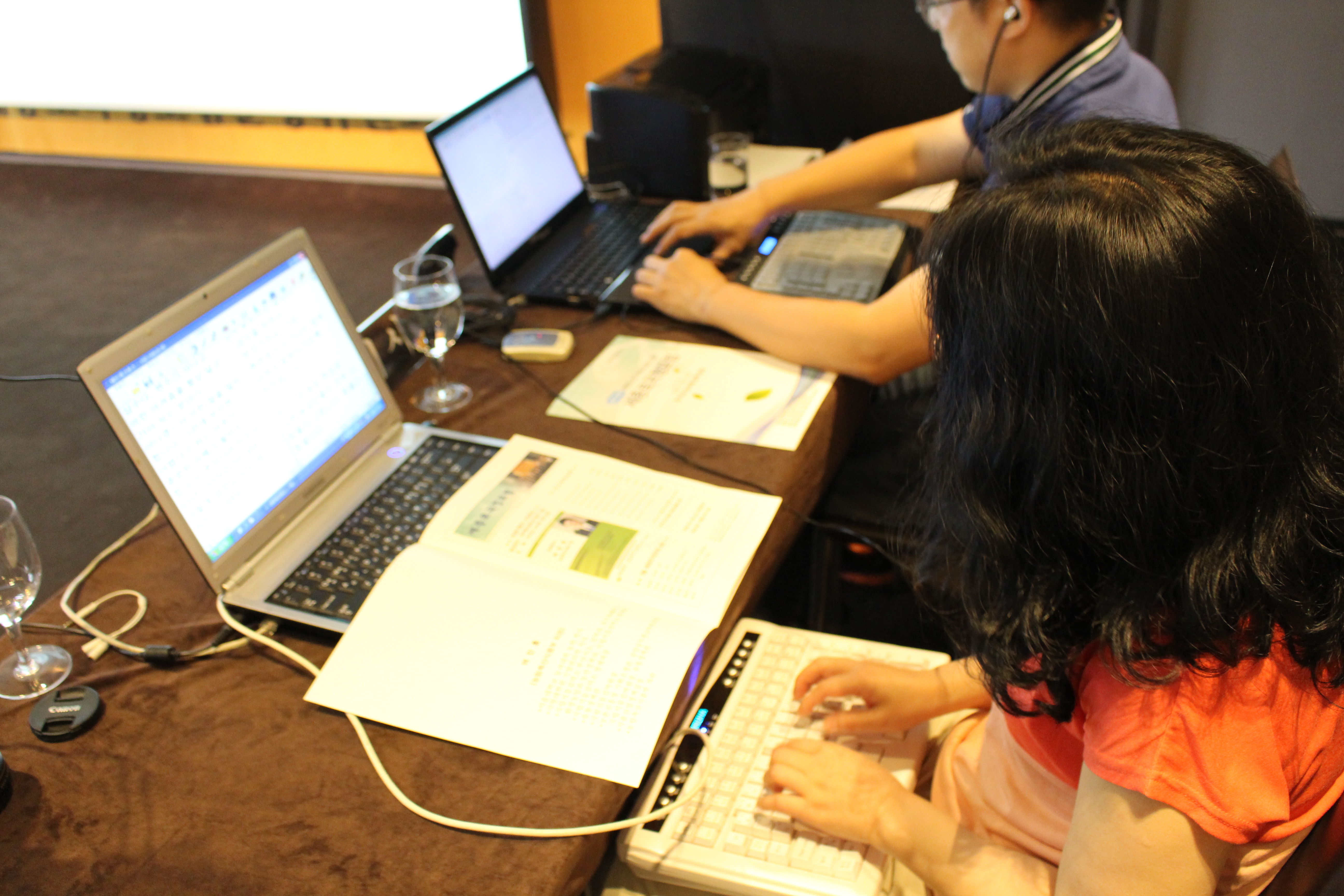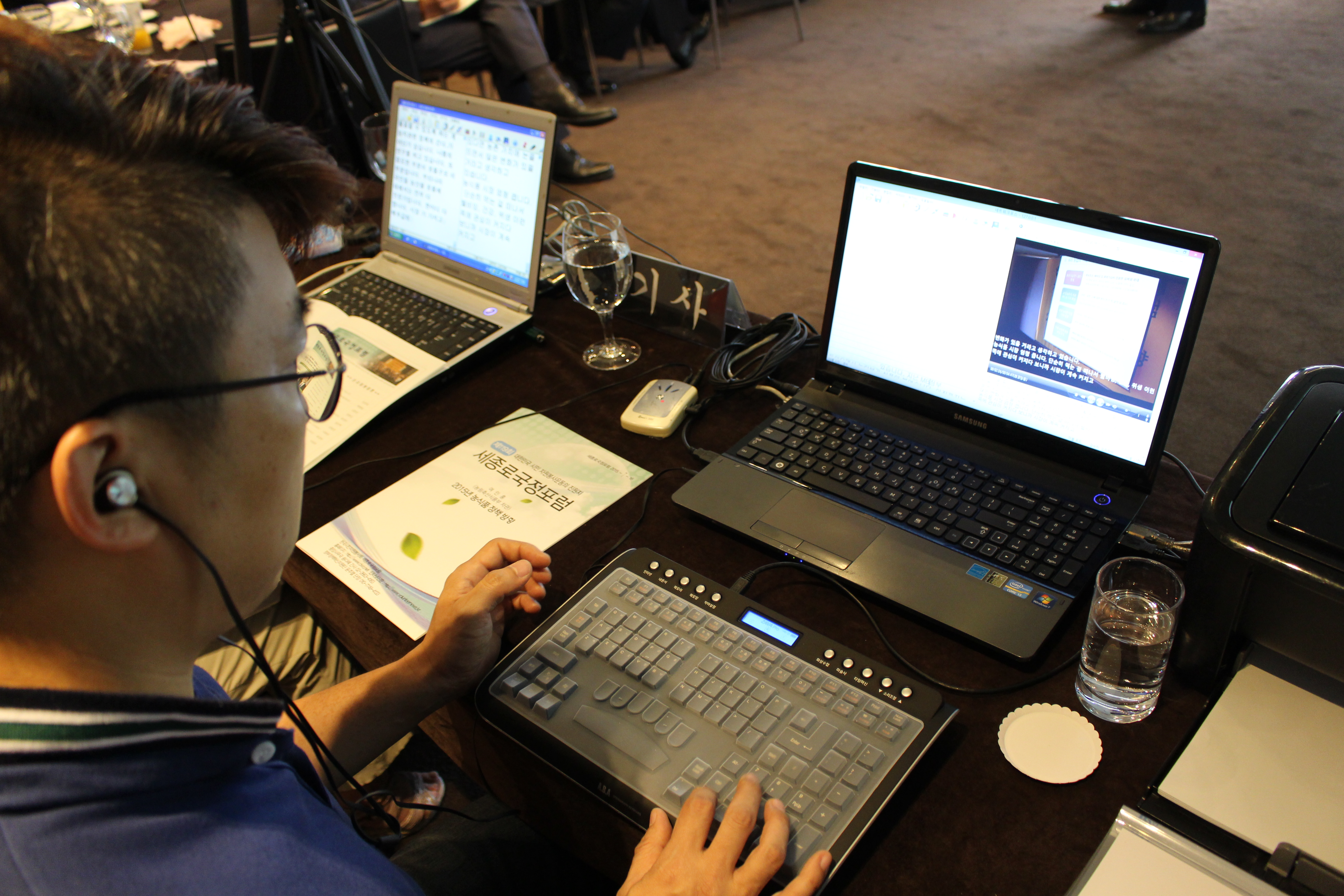 저희가 앉은 테이블에 속기사님들이 속기를 입력하시는 걸 바로 실시간 볼 수 있는 태블릿을 설치해주셨는데,