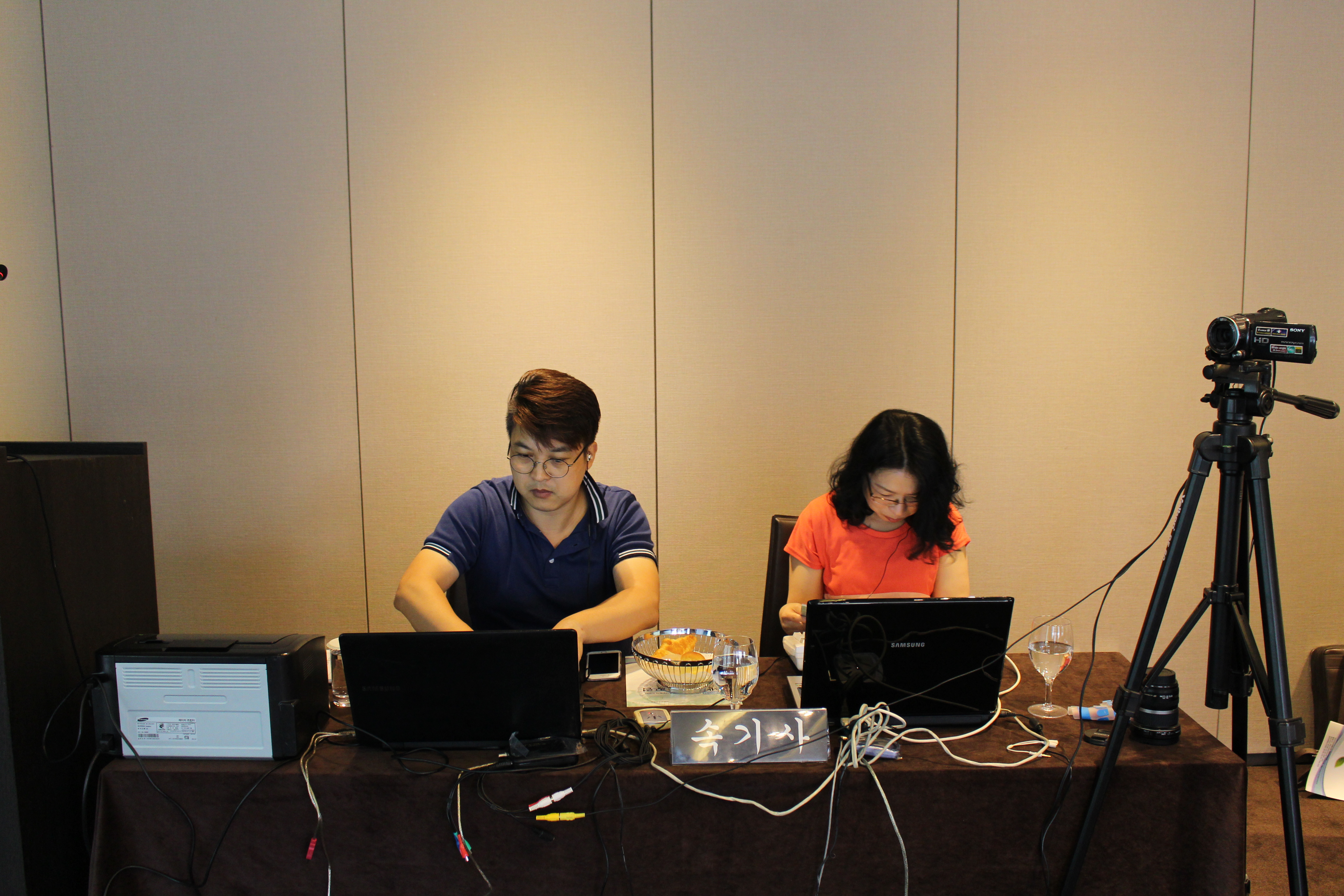 적응을 했던 것 같습니다. 속기사 테이블 바로 옆, 맨 앞줄 원형테이블에 자리를 지정해주셨고, 협회 분들 녹취팀 분들이