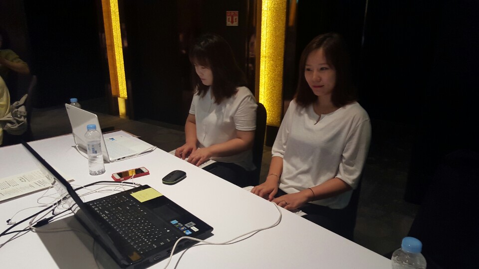 도착해서 포럼 관계자 안내로 속기사석에 앉아 손을 푸는 사이에 협회 선생님과 이번에 저와 같이 속기할 윤미 씨와 인사를 하고