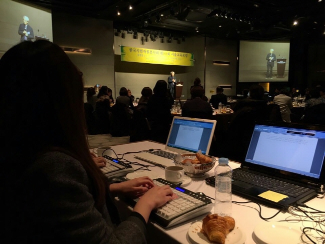 출발하기 전에는 내가 긴 시간 동안 잘할 수 있을까? 라는 생각을 하였는데 그래도 실시간으로 제가 속기하고 있는 것들이 화면에 보여 지는 것이 아니고 나중에 수정할 수 있다는 사실이 조금 더 긴장감을 덜어주었던 것 같습니다. 오늘도 포럼공지사항과 후기를 보면서 신청을 망설이고 있는 분들은 주저하지 말고 신청해 보시길 바랍니다. 직접 경험하시게 되면 그 무엇보다 값진 것을 얻게 되는 것 같습니다. 현장 경험뿐만 아니라 체험을 통해 같이 공부하고 계신 분과 대화를 나누며 같은 고충을 토로함으로써 많은 위로가 되고 더 정진할 수 있는 계기가 되는 것 같습니다.