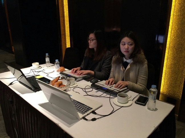 이른 새벽부터 지하철 첫차를 타고 호텔에 도착하였을 때 포럼 안내해주시는 분이 속기사분이시냐며 속기사 석으로 안내를 해주셨습니다. 항상 포럼봉사 공지사항을 보면서 ‘3급 이상의 실력이 되면 꼭 신청해야지.’ 라는 생각을 하고 있었습니다. 급수실력이 된 후에 운 좋게 2월 서울포럼에 갈 수 있게 되어서 너무 좋았습니다. 항상 시험을 보면 너무 떨리는 제 손이 원망스러워서 낯선 상황에서 속기 해볼 기회가 있으면 참 좋겠다. 했는데 1시간 남짓한 연설을 오롯이 쳐볼 기회가 생기니 많은 것을 생각하게 되는 경험이었습니다. 6시 30분까지 도착해서 7시 정도에는 시작할 줄 알고 긴장하고 있었는데 강연 전에 한국 시민자원봉사회 샤프론 봉사단의 임명장, 기장증 수여가 있어서 그동안 사회자의 말로 중간중간 손을 풀면서 긴장이 많이 풀렸던 것 같습니다.