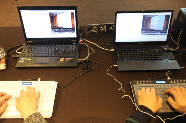 가보니까 강연처럼 좋은 말씀을 해주시고 서로 질문도 하고 응답도 하는 것이었습니다. 제일 중요한 거는 공부를 하면서 과연 속기사는 어떻게 일을 하고 어떤 방법으로 실시간으로 속기를 치는 것일 까? 라는 궁금증을 항상 가져 오던 저에게는 아주 뜻 깊었습니다. 2인1조로 실시간으로 영상속기를 쳐내고 강연자의 말씀이 끝나고 5분정도 되니까 속기록이 나오는 것에 신기하기도 하고 한편으로 저런 업무를 하기 위해 소리자바 속기사를 공부를 하고 그 꿈을 이루려고 노력하는 저자신이 뿌듯하기도 했습니다.
