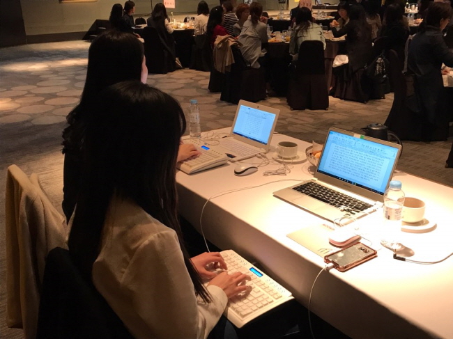 현장에서의 여러 가지 상황, 주의해야 할 점, 취업, 공부하면서 궁금했던 점 등등 친절하게 말씀해주신 것이 너무나도 감사했습니다. 포럼이 시작되기 전에 '항상 수고해 주시는 속기사분들'이라며 소개를 받은 후에 강연은 시작이 되었습니다. 이 날 저희가 속기해야 할 포럼의 주제는 '아이들의 성장과정에 따른 학부모의 역할은 무엇인가'였습니다. 여러 교육학자들, 외국의 다양한 대학들과 실험 등 익숙하지 않은 내용들이 있어서 좀 당황스럽기도 하였습니다. 또한 평소 시험 준비할 때 낭독 파일을 끊지 않고 여러 개 많이 이어 들었던 저는 1시간 속기하는 것이 힘들지 않을 것이라고 생각했습니다.