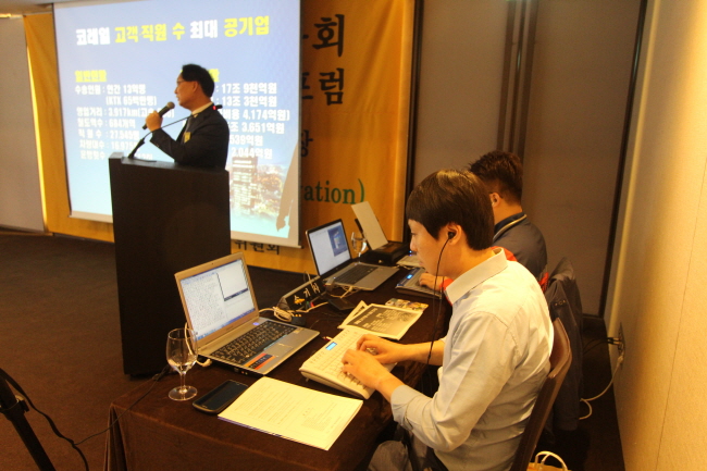 포럼이 준비되는 동안 맛있고 근사한 아침식사가 대접이 되어서 식사를 하면서 속기에 관해 궁금했던 사안들을 선생님들께 질문을 했는데 제가 몰랐던 부분이나 공부방법등에 대해 자세히 알려주셔서 너무 감사했고 유익했습니다. 현장속기 체험을 신청하지 않았다면 생기지 않았을 인연인데 이번 체험이 단순히 속기사분들이 속기하는 모습만을 보는 게 아닌 이렇게 선생님들과 좋은 인연이 맺어질 수 있는 계기가 되어서 더욱 값진 경험이 된 것 같습니다. 포럼이 진행되자 저희 테이블 위에 놓여진 모니터 화면으로 속기사분들께서 기록하시는 모습을 실시간으로 확인할 수 있었는데 시작하는 순간부터 눈을 뗄 수 없었습니다.