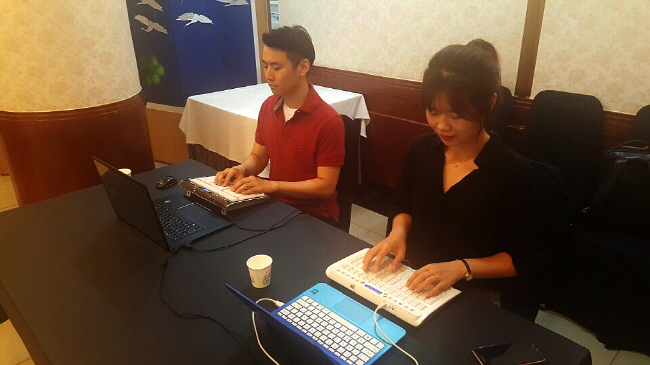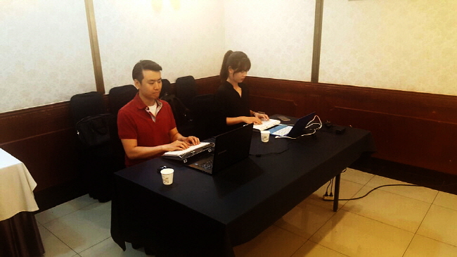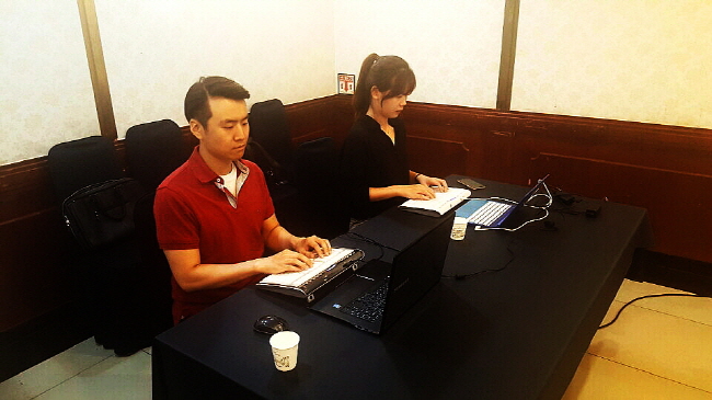 사실은 제가 올 4월에 2급 자격증을 취득한 상태에서 서울포럼을 신청하게 되었습니다. 2급자격증이 있더라도 실무경험과 현재 봉사경험이 없는 장롱자격증(?)과 같은 상태였는데 이번 서울포럼에 참석하게 되어서 너무나 기쁘고 영광스러웠습니다. 부랴부랴 도착을 해서 박정웅 선생님 인솔하에 기본셋팅을 하고 자리에 앉아 연습을 하며 강연시작을 기다리고 있었습니다. 몇 분 뒤 사회자의 강연자 소개와 여러 다른 인사분들을 소개해주시는 동시에 저희 속기사들도 소개를 해주시더라고요. 그때 “내가 속기사가 됐구나” 하는 기분이 처음으로 나더라고요. 저는 맨날 집 안에서 연습만 했지 나와서 속기를 쳐보거나 남들 앞에서 쳐보는 건 새로운 모험이었습니다. 그렇기 때문에 강연이 시작되니 긴장이 좀 되었습니다. 더군다나 사회자분이 말이 굉장히 빠르더라고요. 만약 실전에 가면 이런 속도로 쳐야 하는... 하면서 오타가 급격하게 늘어났습니다. 그렇지만 뒤에 계신 박정웅 선생님께서 실시간으로 피드백을 해주셨습니다. “너무 다 치려고 하지 말고 이렇게 말이 빠를 경우에는 단어위주로 정확하게 치려고 노력해라”라고 하셨습니다.