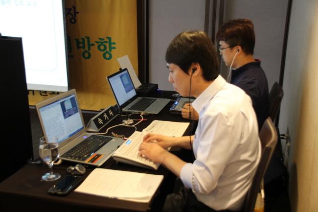안녕하십니까? 저는 이번 7월 세종로 포럼 체험단에 당첨된 이상화입니다. 처음 신청을 했을때는 저도 실시간으로 속기록을 작성할 수 있는 기대감이 있었지만 저의 착각으로 끝났습니다. 하지만 직접 현장에 가서 속기사 분들의 속기록을 본다는 것만으로도 큰 의미가 있을 것이라는 기대감을 가지고 대구에서 서울로 행사 전날 올라갔습니다. 저녁 늦게 서울에 도착하였기에 3시간정도 잠을 청하고 약속 장소인 호텔로비에서 김세리 선생님과 함께 참여 하게된 수진씨와 함께 간단한 인사를 나누고 행사장소로 올라갔습니다.