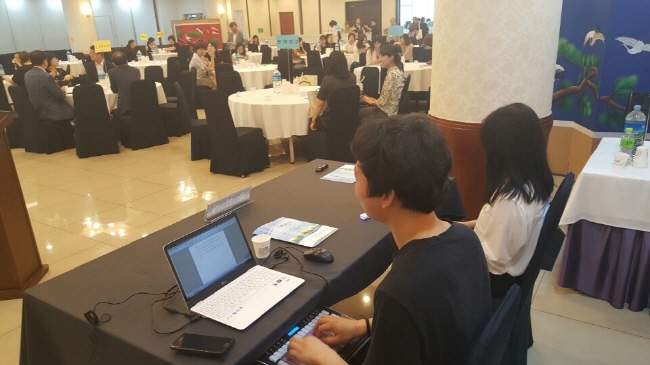 그리고 선생님께서 포럼 시작 전에 하신 말씀이 강연자의 말을 더 잘 듣기 위해 입모양이나 얼굴을 보고 속기하라는 말씀을 해주셨는데, 공부할 때는 항상 화면을 보고 치는 습관이 들어 서인지 얼굴을 보고 속기를 한다는 게 쉽지는 않았습니다. 그리고 제일 익숙치 않았던 건 속기를 하는 시간이었습니다. 지금까지 속기를 집중해서 오래쳐봤자 20분에서 30분가량이었는데, 강연은 1시간 가량 진행되다보니 집중해서 1시간을 친다는 게 정말어려웠던 것 같아요! 속기사는 집중력이 좋아야 한다는 걸 다시 한 번 실감하였습니다.