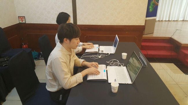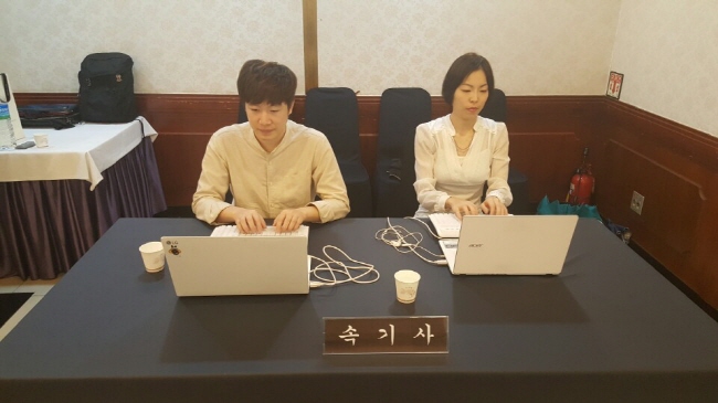 이번 9월달 운을 시험에서 쓰지 못하고 서울포럼에의 기회를 얻게 되었습니다. 실무 체험은 4월 시험 전에도 한 번 프레스 센터에서의 경험이 있었어서 그렇게 긴장이 되지는 않았습니다. 처음 도착하니 여느 행사장과 같이 깔끔하게 준비가 되어있었어요. 선생님 보다 먼저 도착 해서 의미없이 서성거리니 제 모습 어디에도 속기사의 흔적은 없었는데 속기하러 온 사람인 것을 눈치 채고 자리를 안내해 주시더라고요. 속기사들의 자리에 가서 노트북과 저의 키보드를 꺼내서 준비를 해놓고 있으니 저 말고도 다른 체험자 여성분이 오셨습니다. 그리고 같이 손을 풀었어요. 시험대비반을 거치면서 무지막지하게 많이 연습을 해서 그런지 시험 끝난 후에 5일을 내리 쉬었는데도 불구하고 손가락이 잘 움직여 졌어요. 그렇다고 실력이 향상 된 것은 아닙니다. 저의 실력 때문에 문제가 생겼거든요.이 것은 마지막에 이야기 하도록 할께요.