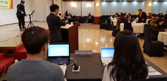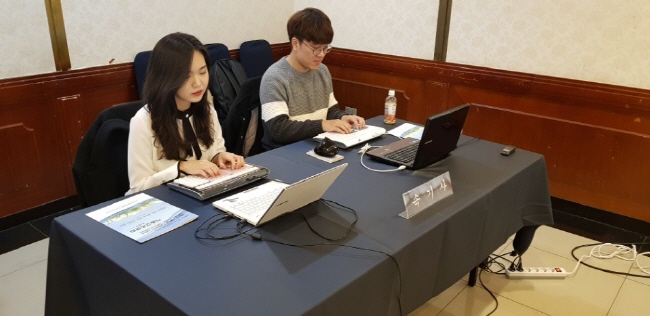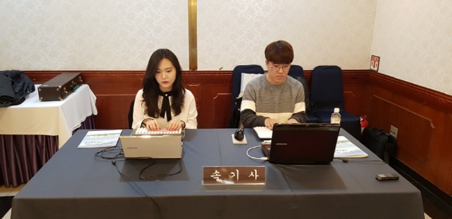 현장속기는 처음이라 정말 떨리고 또 한편으로는 직접 속기현장을 체험할 수 있다는 것에 굉장히 설렜습니다ㅎㅎ 도착해서 노트북과 키보드를 연결한 후 선생님과 또 다른 봉사자분이랑 얘기 나누면서 기다리다가 시작되었습니다.