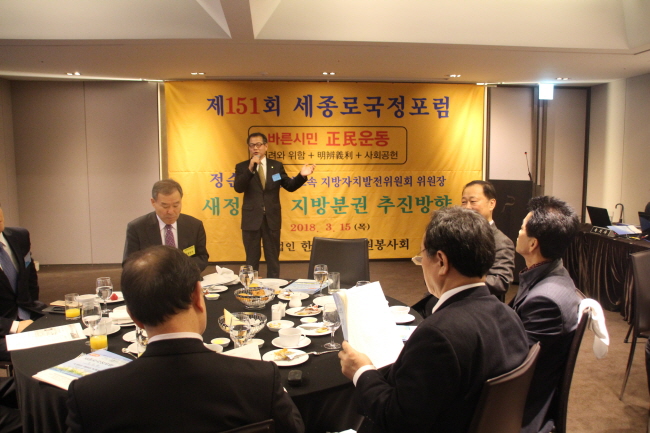 아침 일찍 일어나 첫차를 타고 기대반 설레임반으로 출발했습니다. 도착하니 저와 같이 당첨된 분이 먼저 와계셨고 곧 전진선생님과 민수선생님도 오셔서 포럼이 시작하기 전 오늘 진행될 체험 내용에 대해 설명을 듣고 떨리는 마음으로 현장으로 올라갔습니다. 올라가보니 속기사분과 서브속기사분은 더 일찍 오셔서 미리 장비 등 준비를 마친 상태셨어요. 오늘 세종로국정포럼에서 진행된 주제는 `새정부의 지방분권추진방향` 으로 정순관 지방자치발전위원회 위원장님이셨어요. 포럼 현장에는 많은 분들이 계셨는데 이런 곳에 제가 와 있다는게 정말 신기했어요.