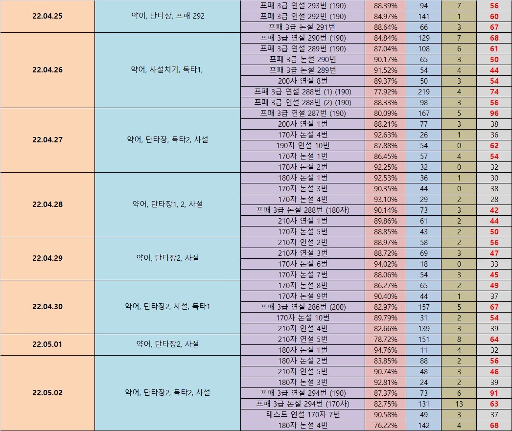제가 남들보다 열심히 한다고는 말할 수 없습니다만 매일 하루도 빠짐없이 공부한다는 말씀은 드릴 수 있습니다. 시간이 안되는 날은 하루 1시간이라도 공부한다는 각오로 임하고 있어 빠르진 않지만 서서히 실력이 오르고 있다고 생각합니다.