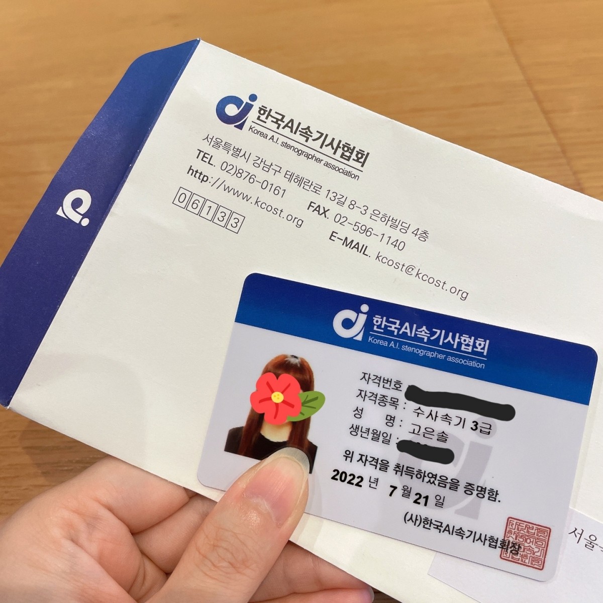 그리고 올해에 AI데이터속기사 1급 자격증도 취득하고 수사속기 3급도 취득을 했는데