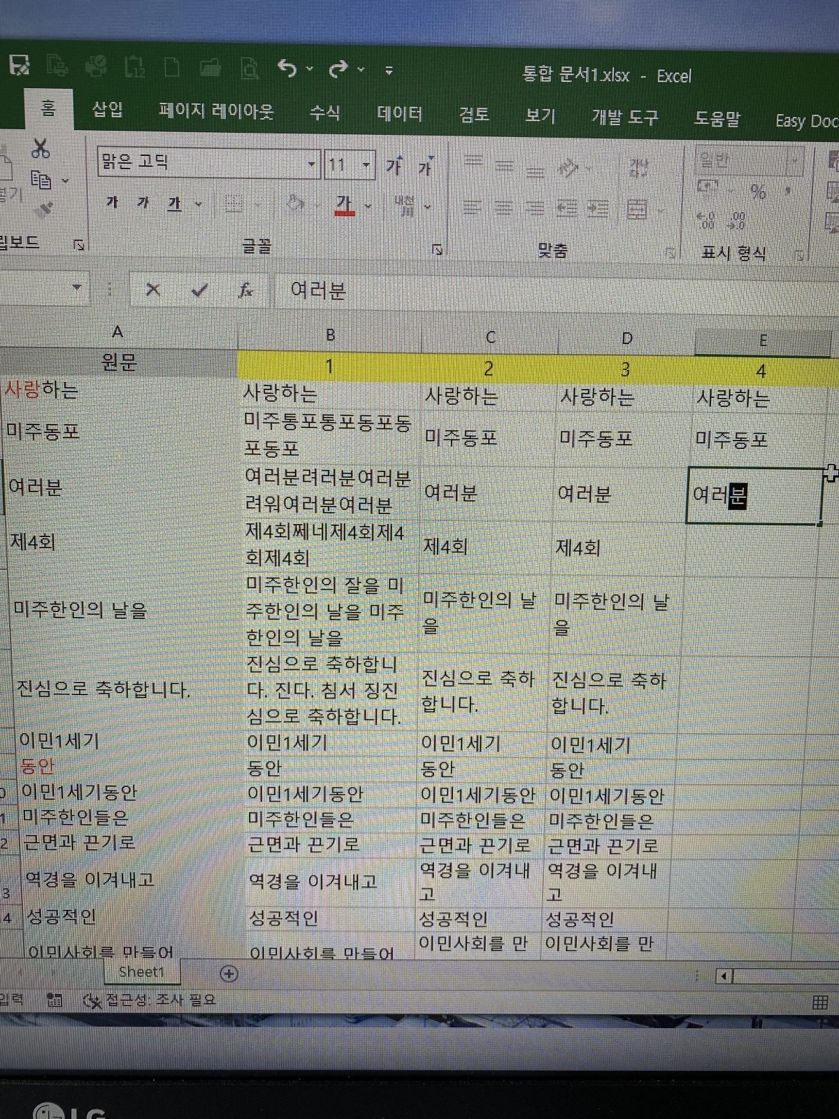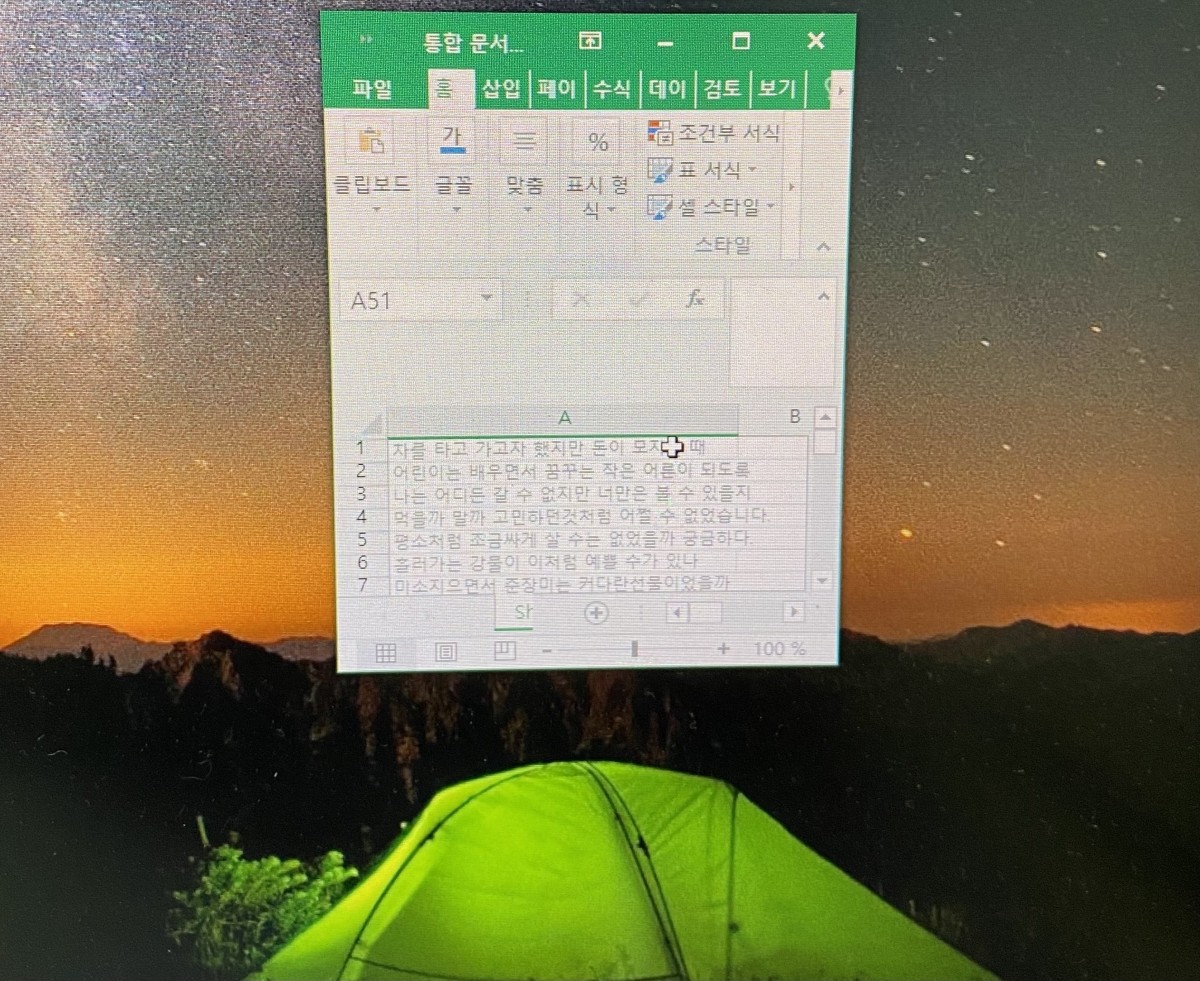 그래서 사무실에서 짬짬이 약어 공부도 하며, 엑셀을 최대한 채팅창 크기와 비슷하게 만들어서 작은 사이즈에 익숙해지려고