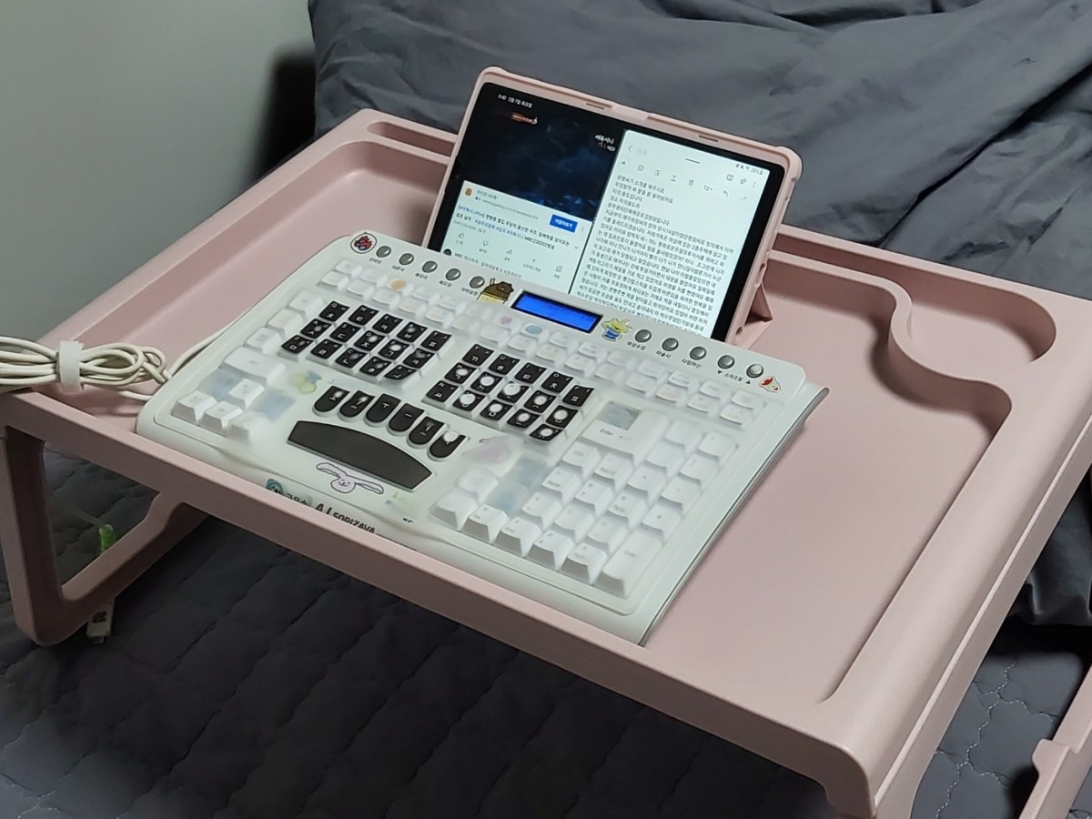 오늘도 이렇게 자기 전에 침대에서 잠깐 간이책상 두고 속기하다가 잘거에요~~