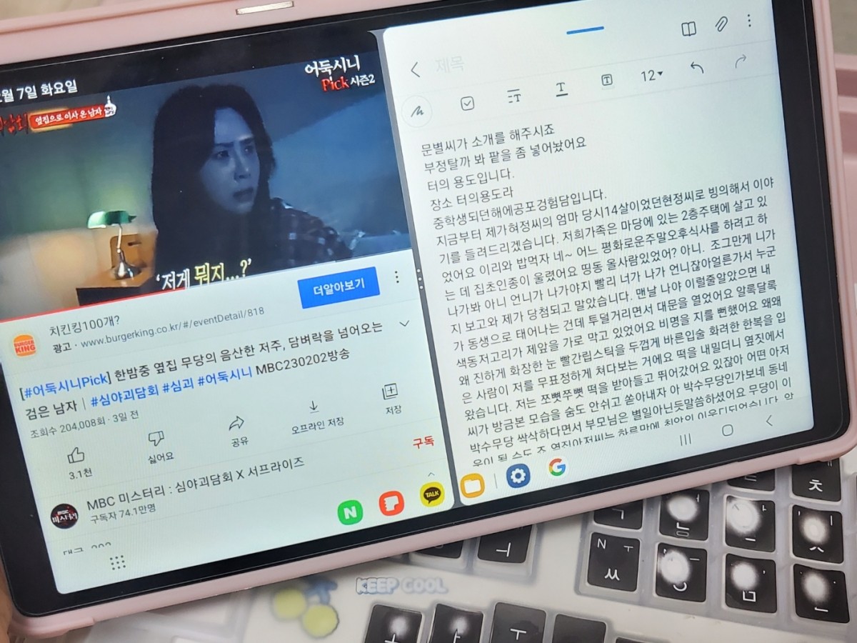 그래서 한번 심야괴담회 보면서 듣고 치기도 해봤는데 역시 너무 편하고 재미있네요.