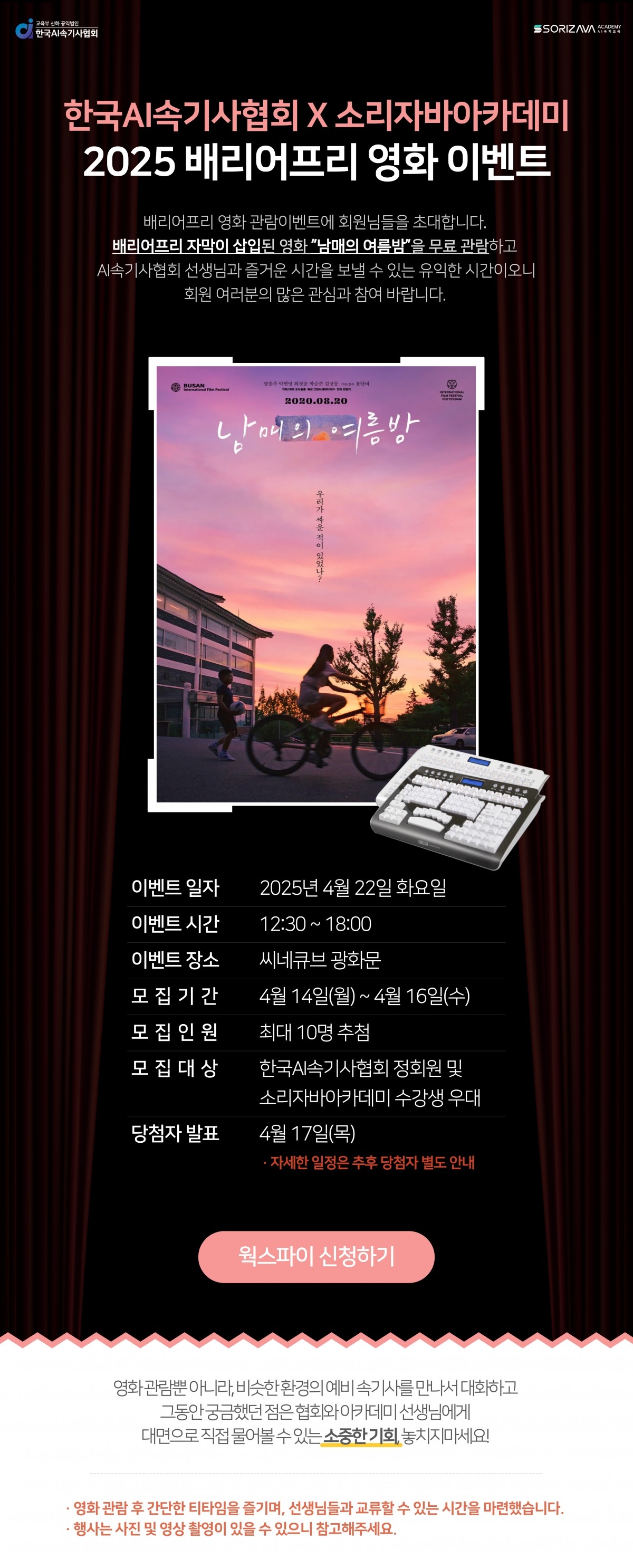 (4회차) 배리어프리 영화 관람 EVENT! 같이 영화보러 가자!