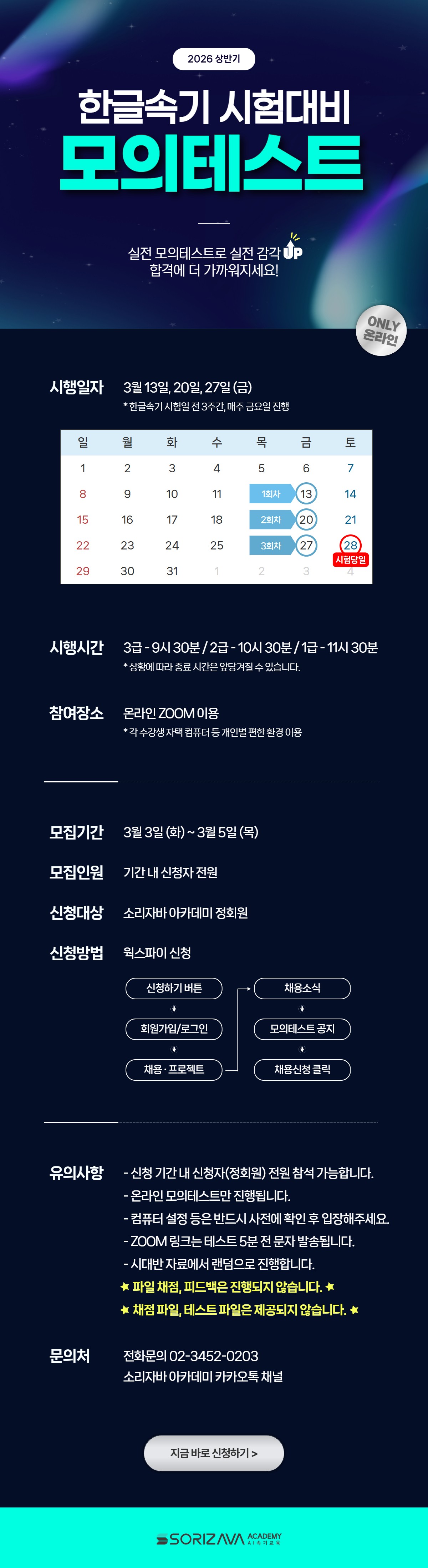 ▶ 26년 상반기 한글속기 시험대비 온라인 모의테스트 안내 ◀