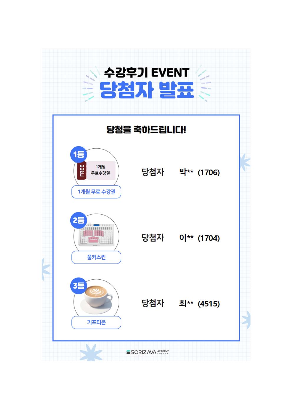 ★수강 후기 이벤트 당첨자★