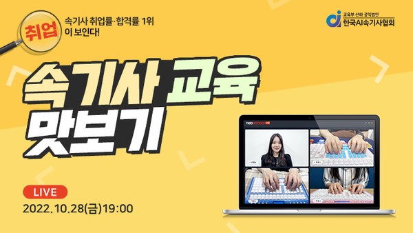 (사)한국AI속기사협회는 28일 금요일 저녁 7시부터 50분 동안 ‘속기사 교육 맛보기’ 웨비나를 진행한다고 밝혔다.