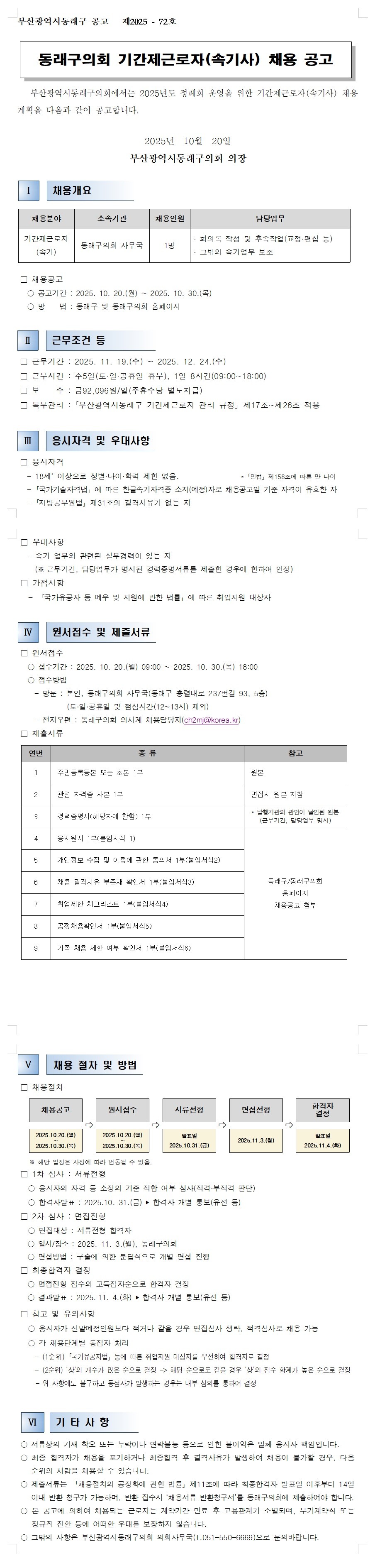 부산광역시 동래구의회 기간제 근로자(속기사) 채용 공고