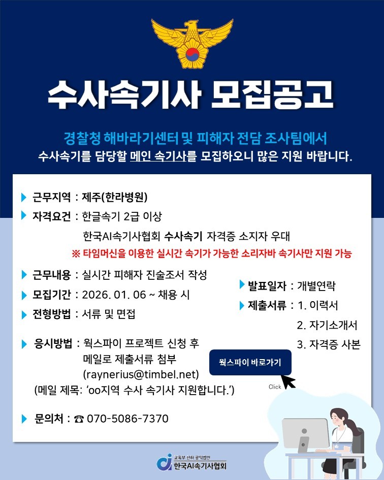 경찰청 해바라기센터 메인 수사속기사 모집(제주 한라병원)