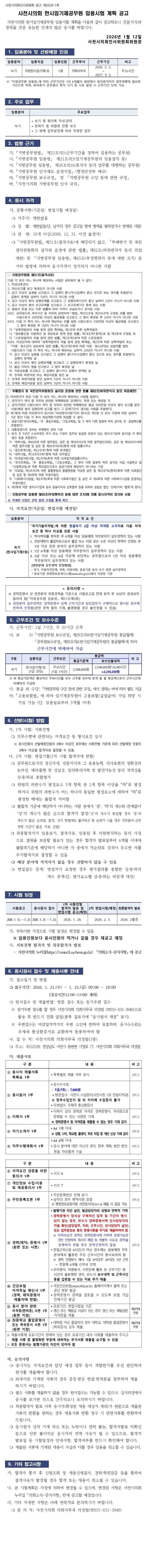 사천시의회 한시임기제공무원(속기사) 임용시험 계획 공고