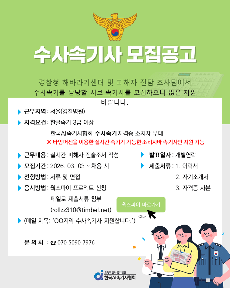 경찰청 해바라기센터 서브 수사속기사 모집(서울 경찰병원)